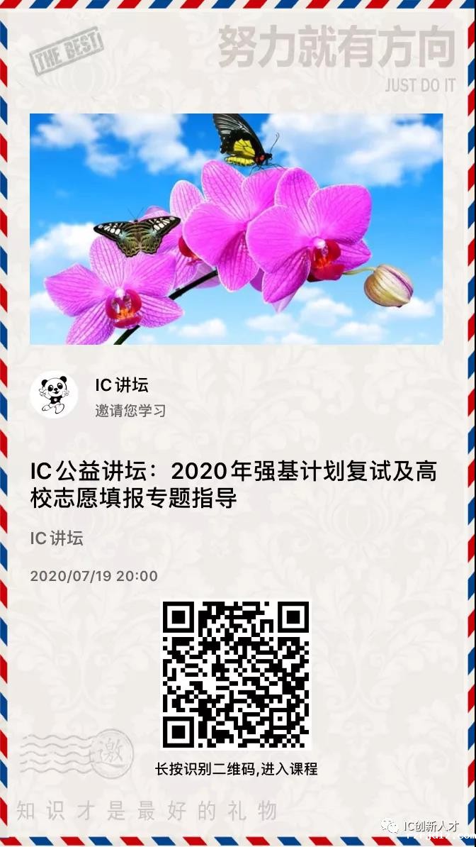 IC讲坛:2020年强基计划复试及高校志愿填报专题公益讲座