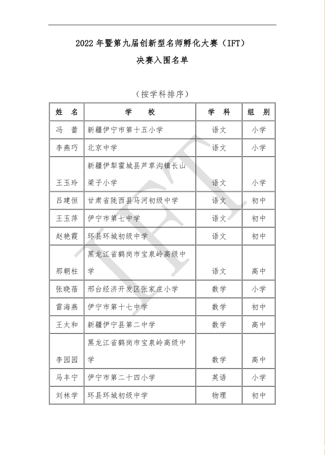点击蓝色字体下载:第九届IFT决赛参会回执及评价标准 直播预告: 时间:2022年6月18日星期六19:30——20:30 主题:创新型名师成长之道——2022年创新型名师孵化大赛决赛解读 观看:微信扫描下方二维码免费观看。