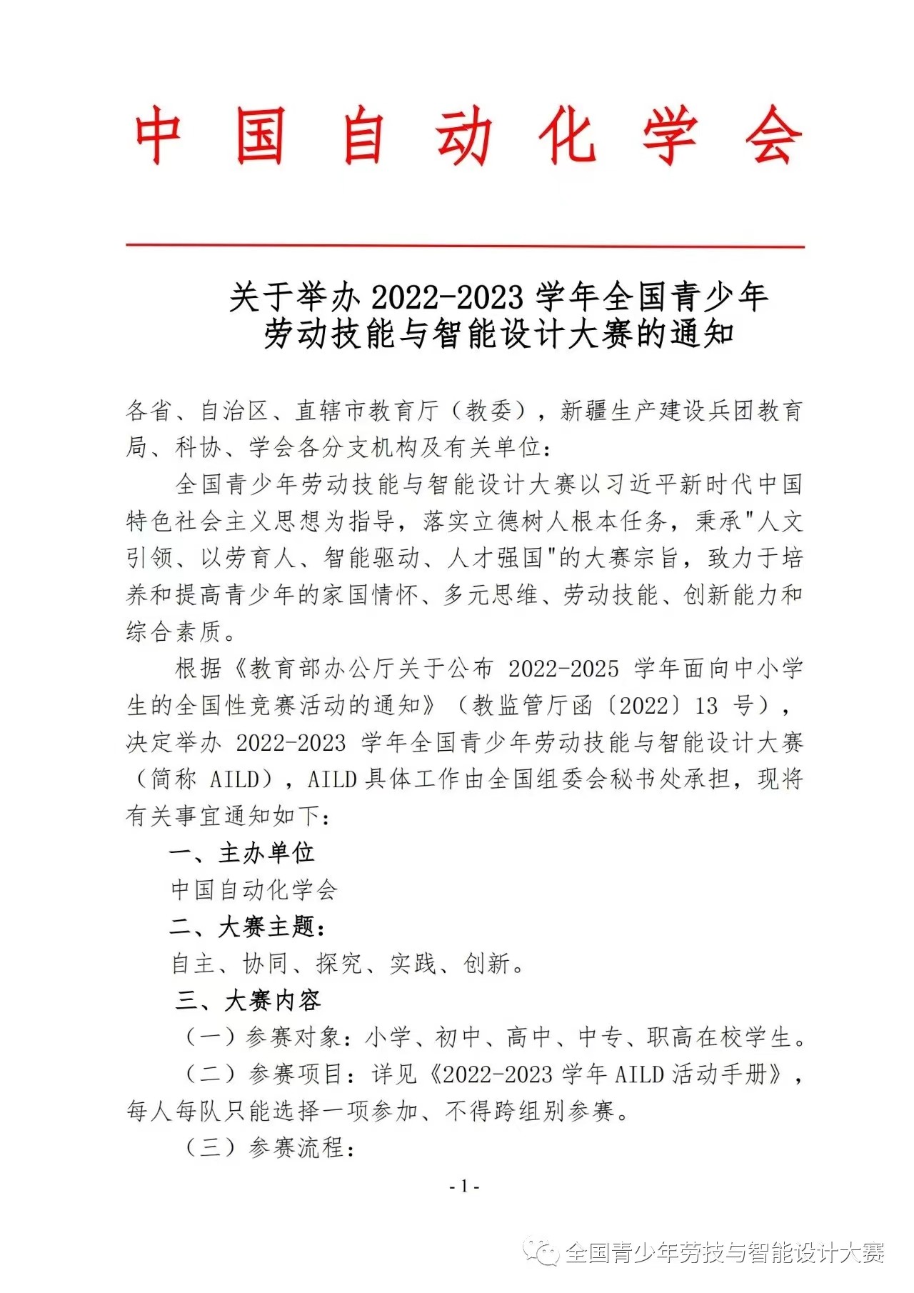 关于举办2022-2023学年全国青少年劳动技能与智能设计大赛的通知
